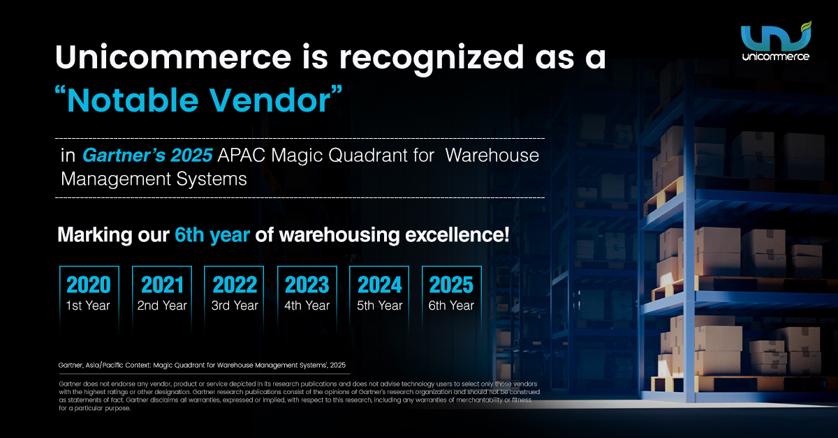 Unicommerce honored in Asia-Pacific as a Notable Vendor in Gartner’s 2025 Magic Quadrant for Warehouse Management Systems.