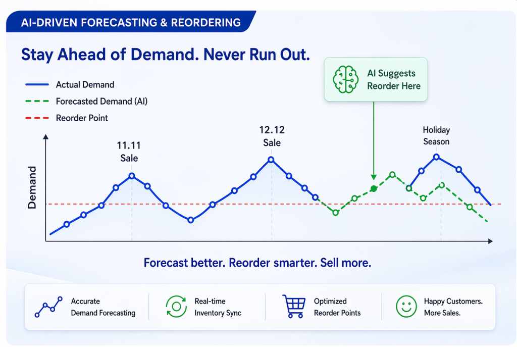 Businesses using AI-driven forecasting can reduce inventory errors by 20–50%, as it prevents errors with automated reorder points and demand forecasting based on past sales trends.